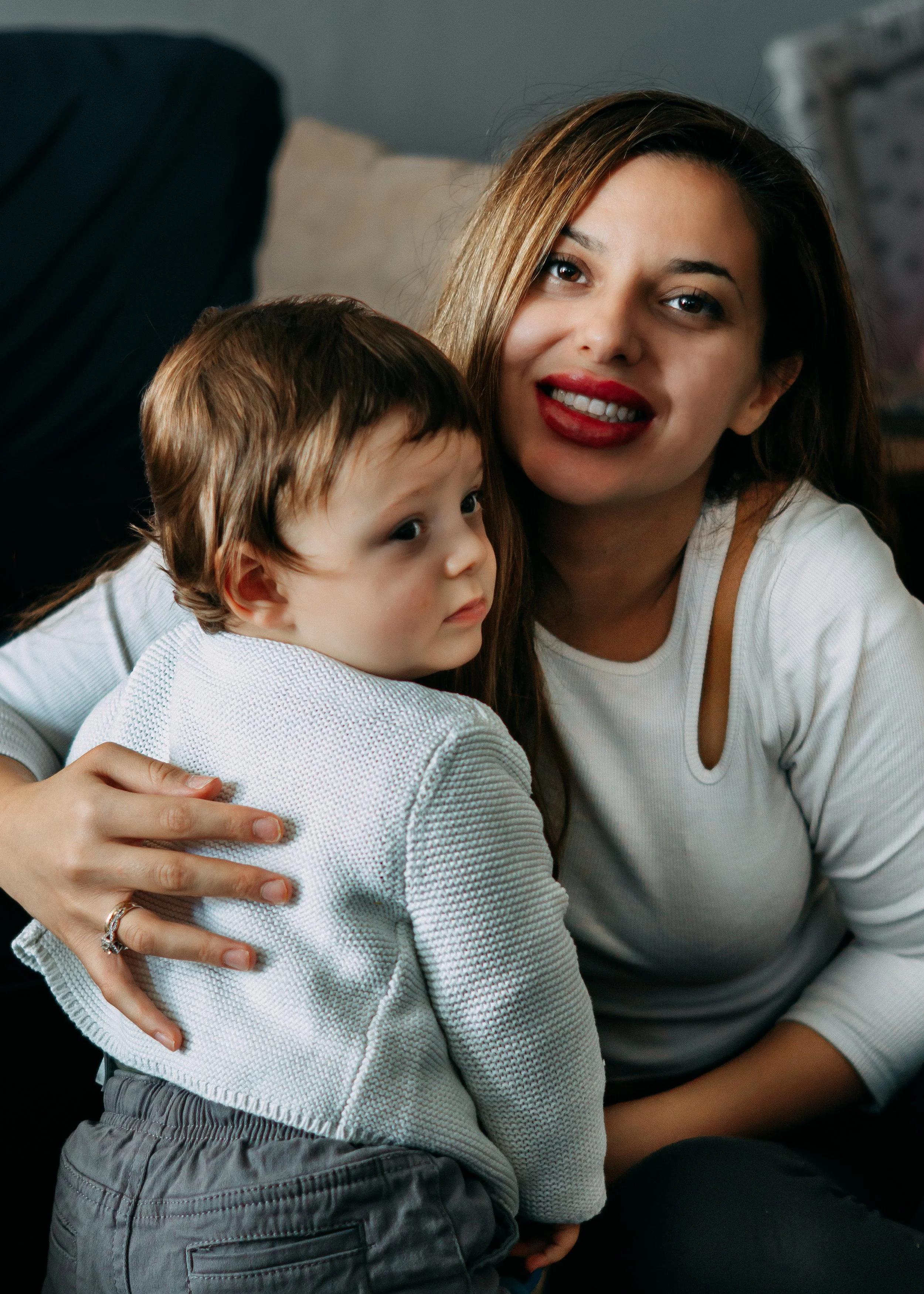 The natural light created beautiful highlights, illuminating the playful connection between mother and son. I loved how Sofia’s laughter echoed in the room as she played peek-a-boo with Stavros, and those candid moments are where true magic happens. It was all about capturing the real, unscripted interactions that showcased their bond.